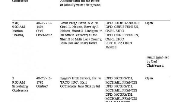 Mille Lacs County Calendar Summary - Public Mille Lacs County Court Printed on Tuesday September 25 2012 at 20144 PM Page 1 of 11. Courtroom 2 Tuesday October 16 2012 Attorneys Department of Natural Resources State of Minnesota. Watch this discussion.