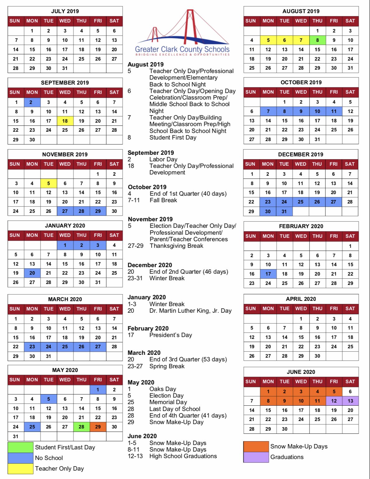 Pleasant Ridge Elementary On Twitter 2019 2020 Gccs School Calendar