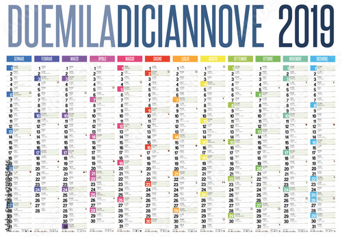 2019 Italian Calendar With Italian Holidays Zodiac Saints Moon Phases Astronomical Events Sunset And Sunrise Stock Vector Adobe Stock
