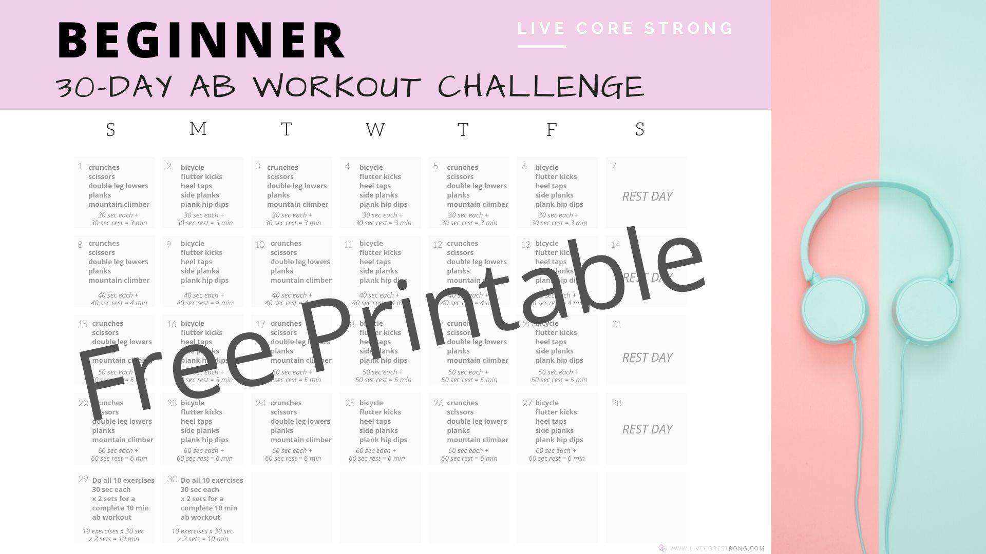 Beginner 30 Day Ab Workout Challenge Workout Calendar Live Core Strong