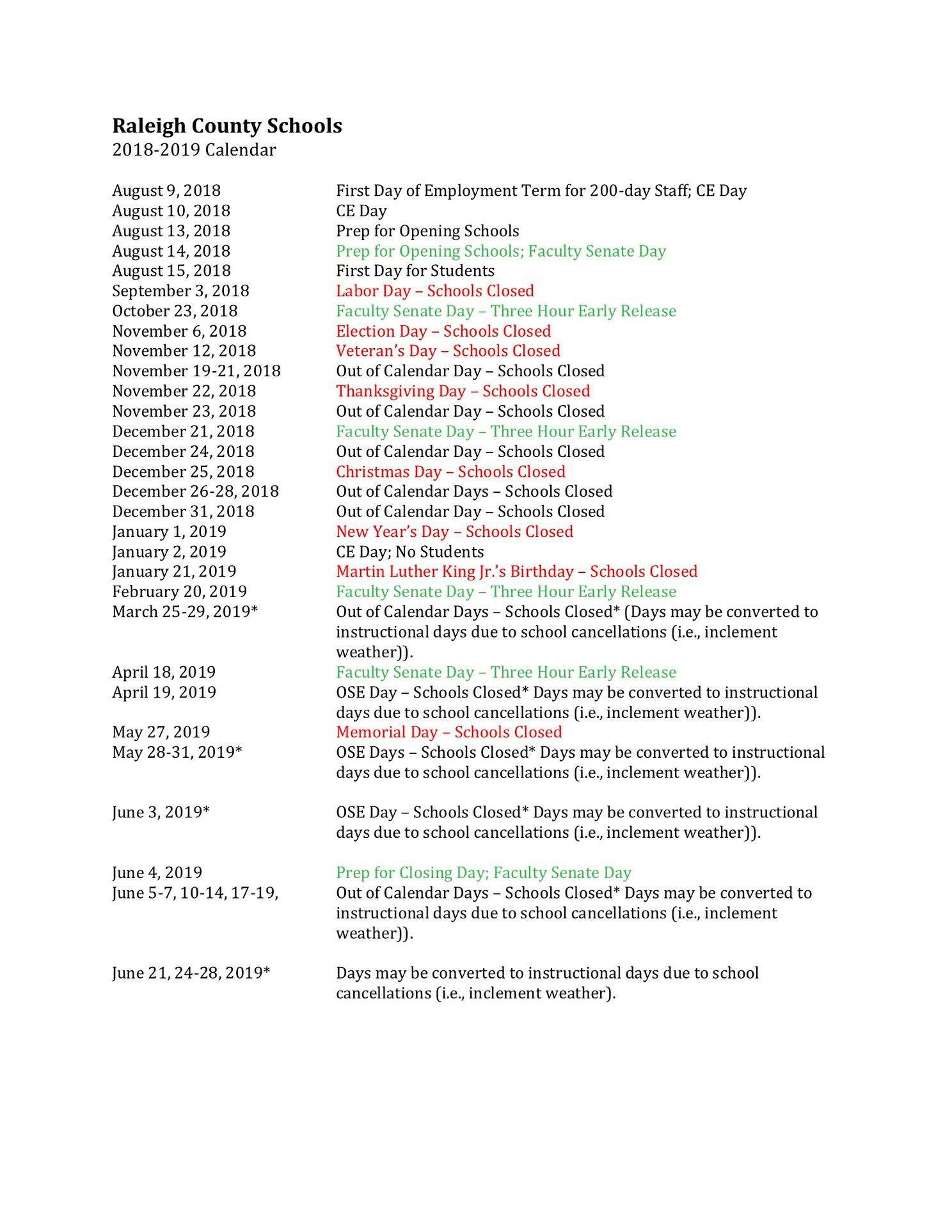 Raleigh County School District On Twitter 2018 2019 School Calendar