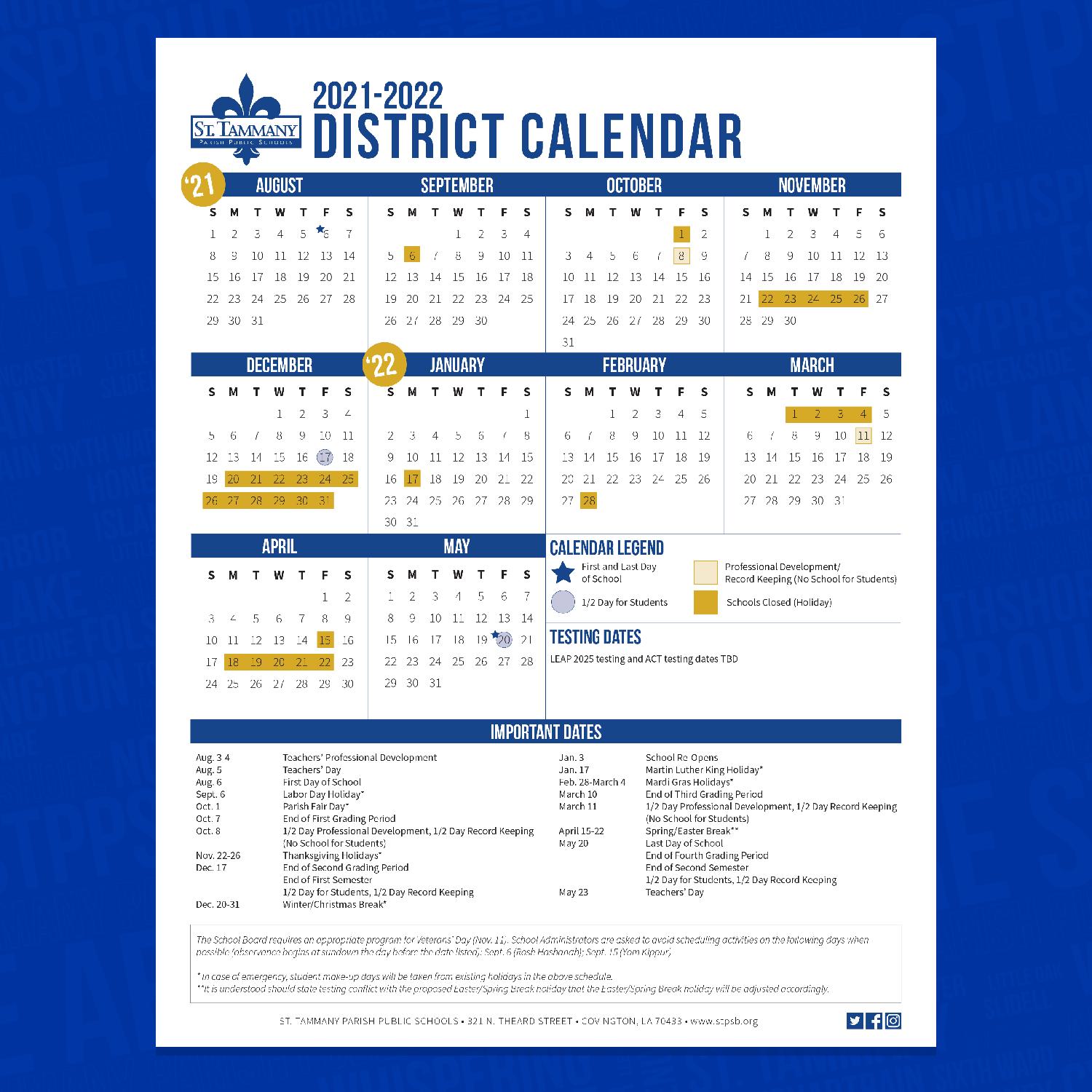 St Tammany Parish Public School System Looking For Important Dates For The Upcoming School Year We Have You Covered Here Is The 2021 2022 District Calendar Wearestpps Facebook